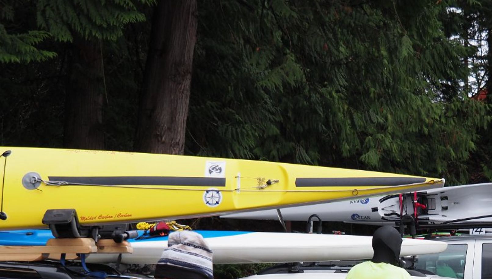 Surfskis and Outrigger Canoes are relatively long boats to transport with car roof boat racks and carriers. If you haul such long boats on a sedan or other short roofed vehicle, there will be a lot of boat not supported or controlled by anything longitudinally unless you add longer supports to your roof racks. Such racks can be home made with a little ingenuity or purchased from several manufacturers. Longitudinal support can also be increased for some cars via a trailer hitch mount.