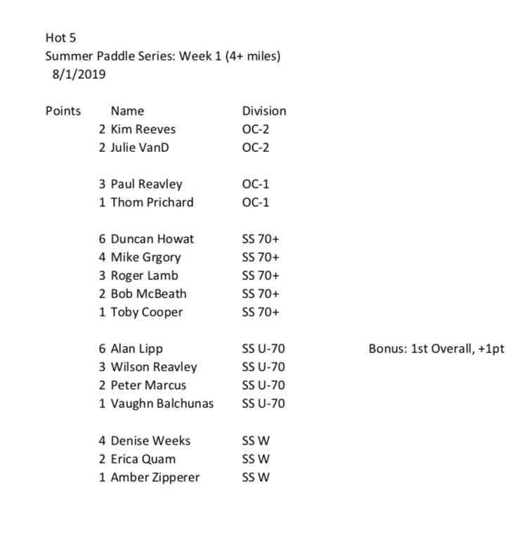 Next week’s race will award additional points for anyone paddling a wide/slow boat: