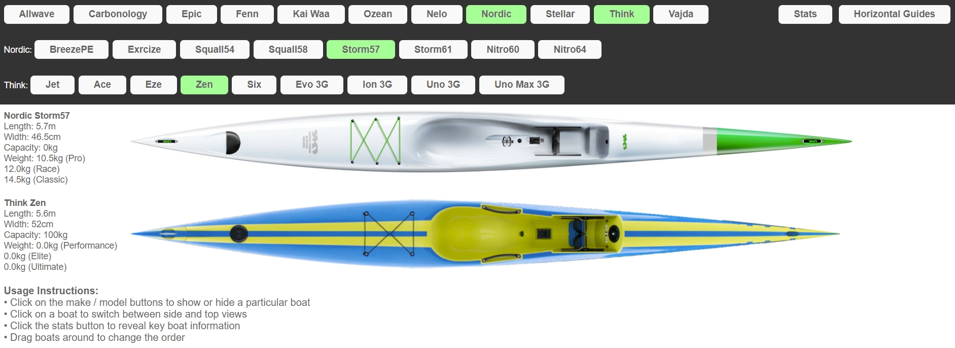 (note that some stats at surfskicomparison.com are missing or differ from the ones in our surfski tables - it is not always easy to keep stats completely up to date - the manufacturers occasionally change them, particularly with new generations)