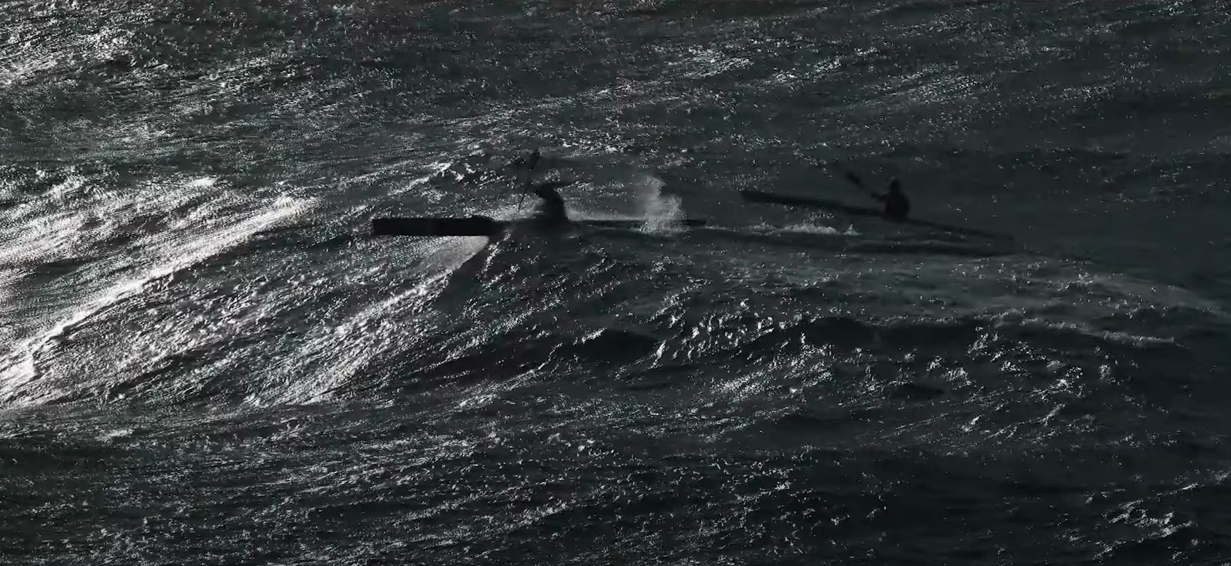 Video showing glassy and rough (low local wind, medium+ wave day) starting in glassy section west of bridge and going 2km straight west with current instead of surfing waves from west to east (expert level surfskier in video - stayed north of the roughest water that day).