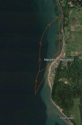 Jim Schulz: “ Maxwelton Beach seems to be the best spot with the long fetch from Seattle and the fact that is gets deep very close to shore. There is a swell train paralleling the shore and fairly close to shore. It reminds me of standing on Highway 14 and looking at the waves in the Columbia. And the paddle upwind is protected by Swede Hill and Indian Point so I can get upwind easily and get more laps in. I’ll go farther south off Indian Point if the wind is lighter and more SE. I’ve done laps up in Bellingham out of Marine Park probably 30 times and this is bigger and better quality. I still haven’t done it on a flood tide yet…. I still want to try laps at Dave Mackie County Park at Maxwelton during a flood tide and paddle south, there should be a bit more tide and it should be perpendicular to the wind. ” (Dec. 2020)